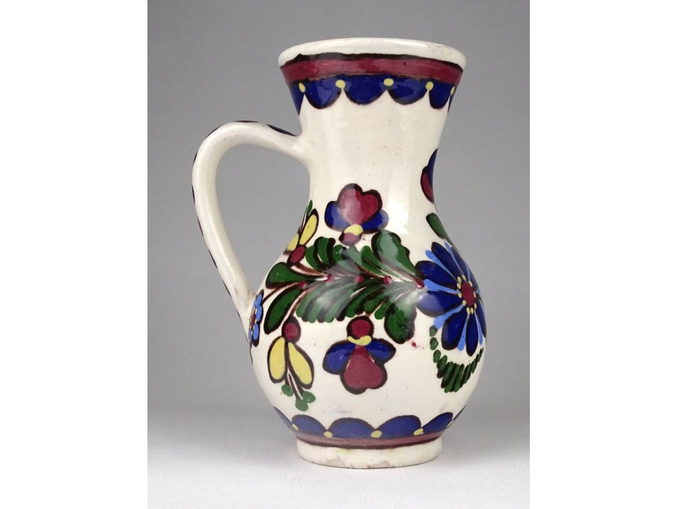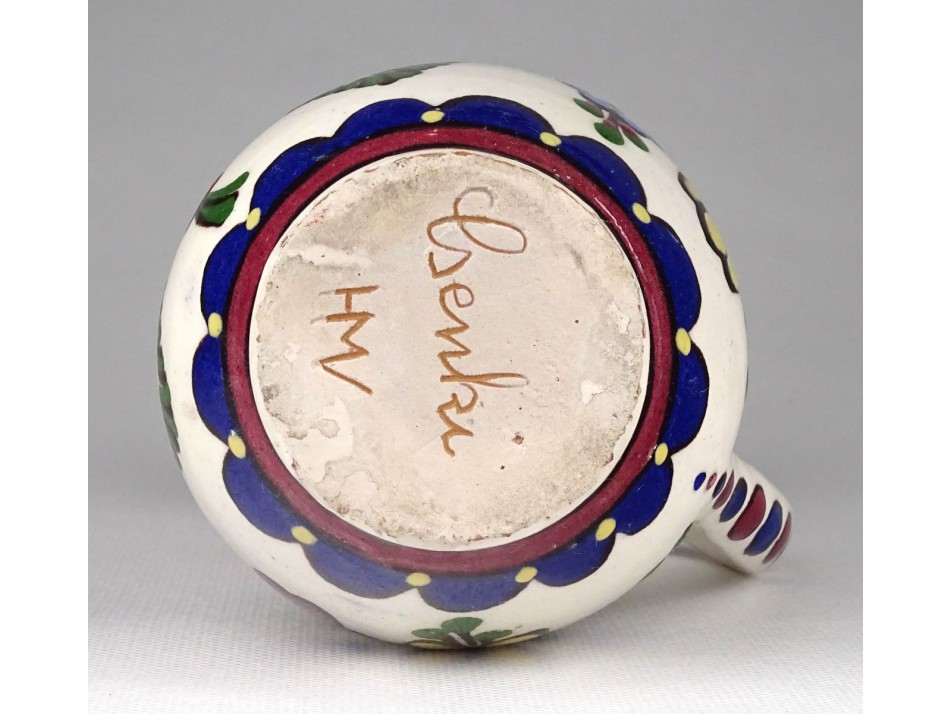 Antik jelzett, mázas, virágdíszes hódmezővásárhelyi kerámia bokály.