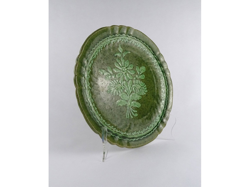 Jelzett nagyméretű zöld vásárhelyi kerámia falitál 29 cm