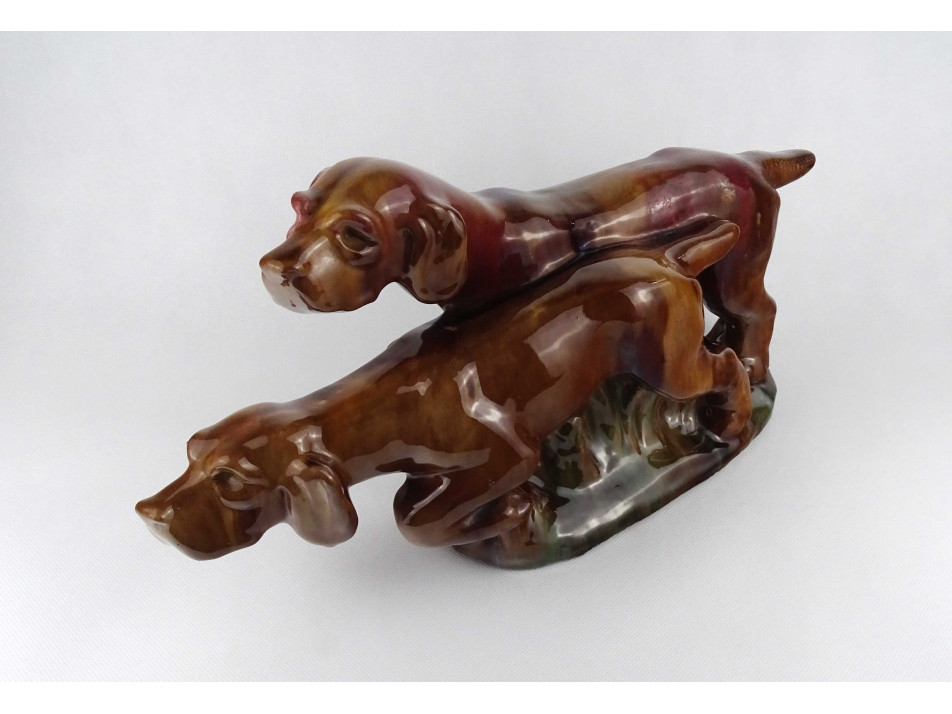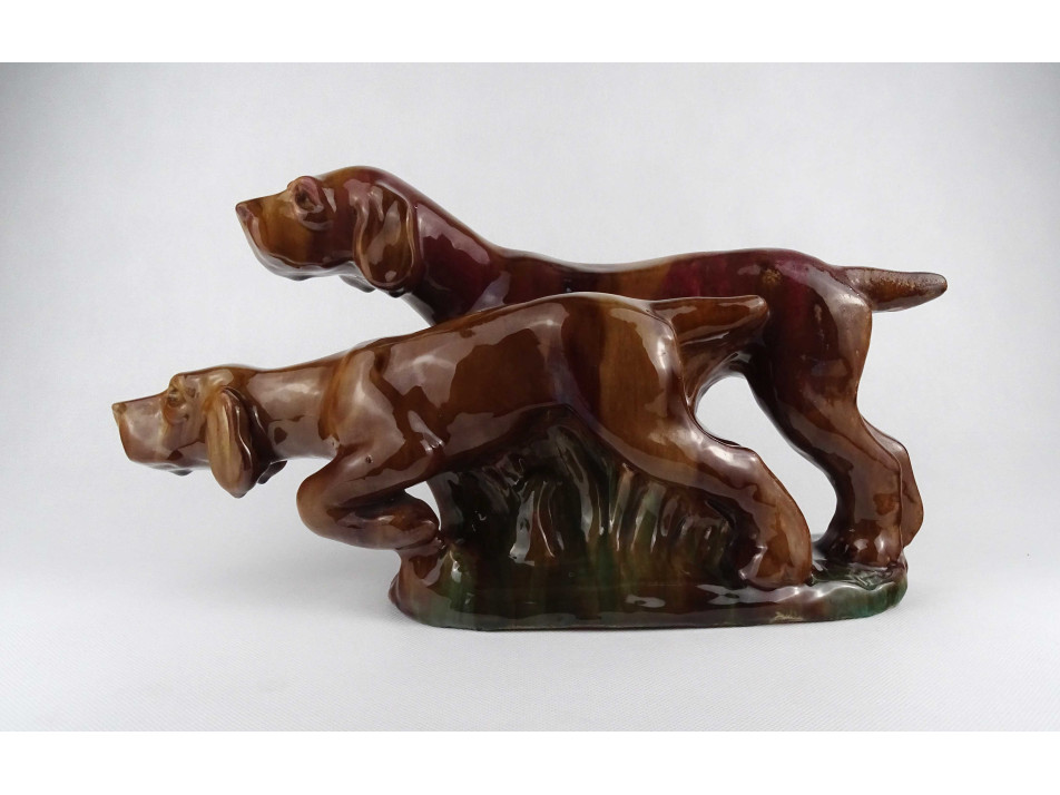Nagyméretű Komlós kerámia vadászkutya vizsla pár 44.5 cm