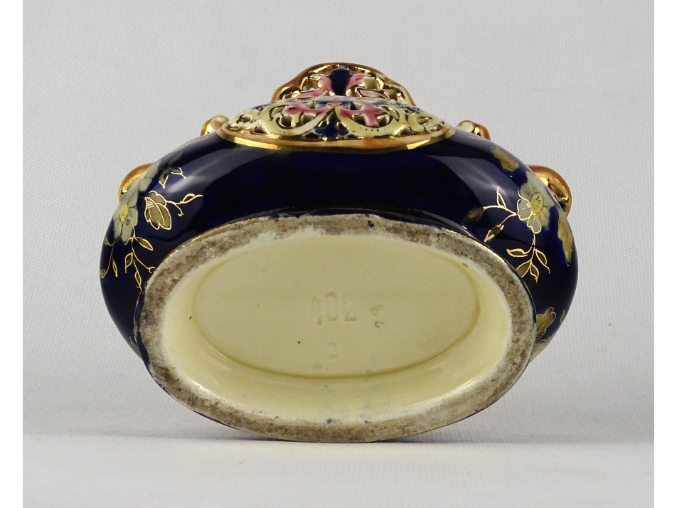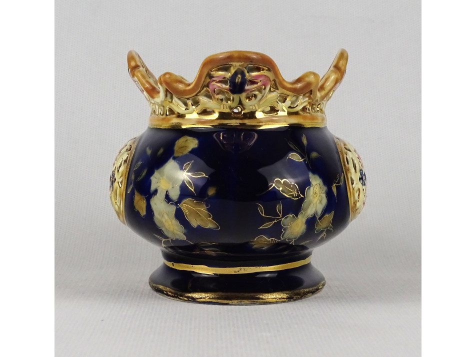Antik jelzetlen kék színű áttört Zsolnay majolika kaspó