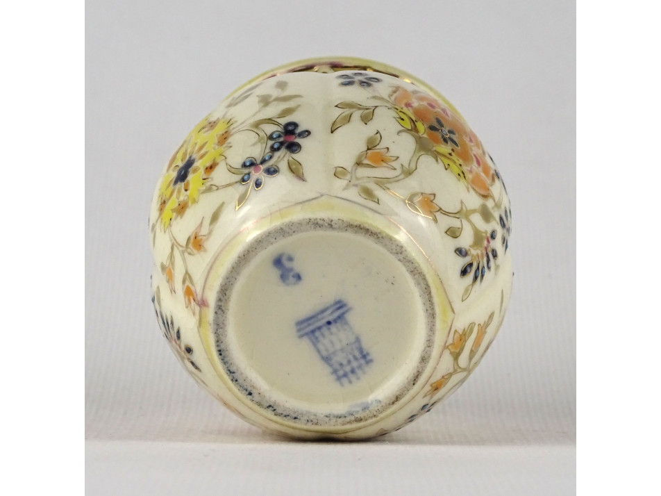 Antik, vajszínű, virágmintás jelzett Zsolnay majolika váza vagy kaspó.