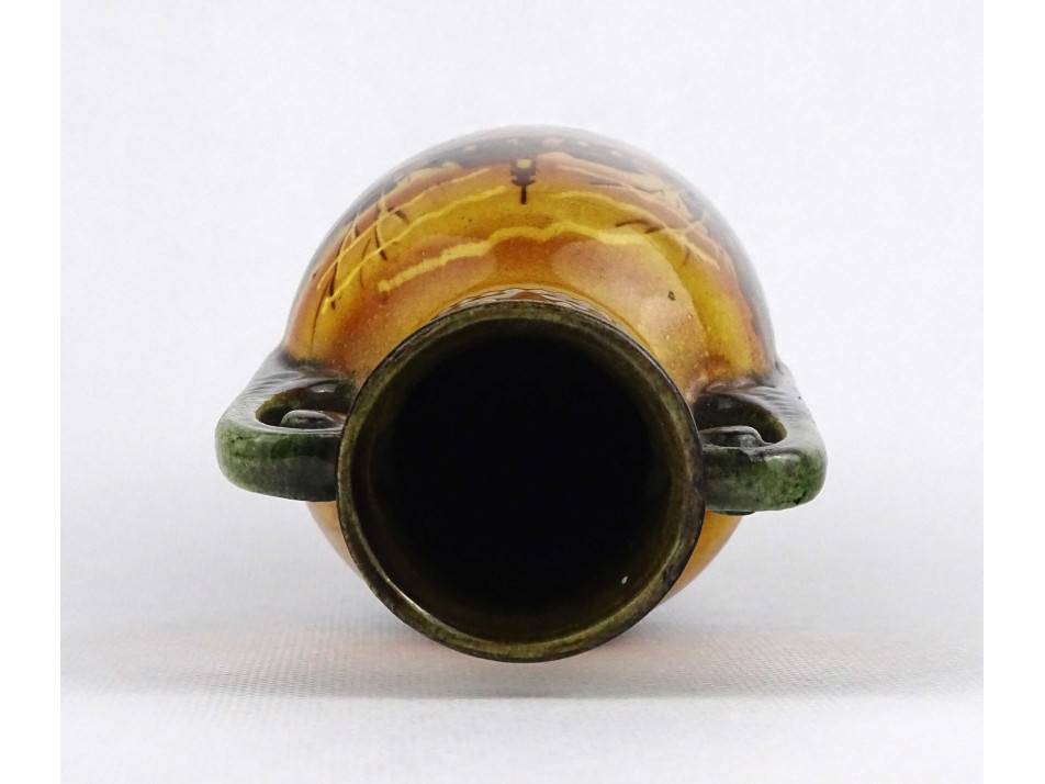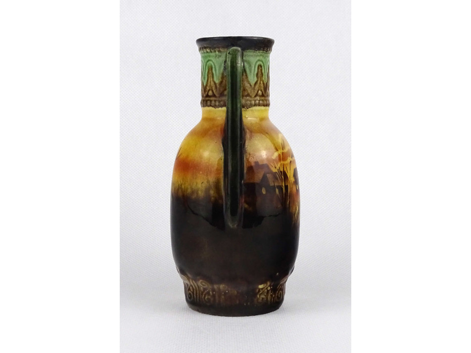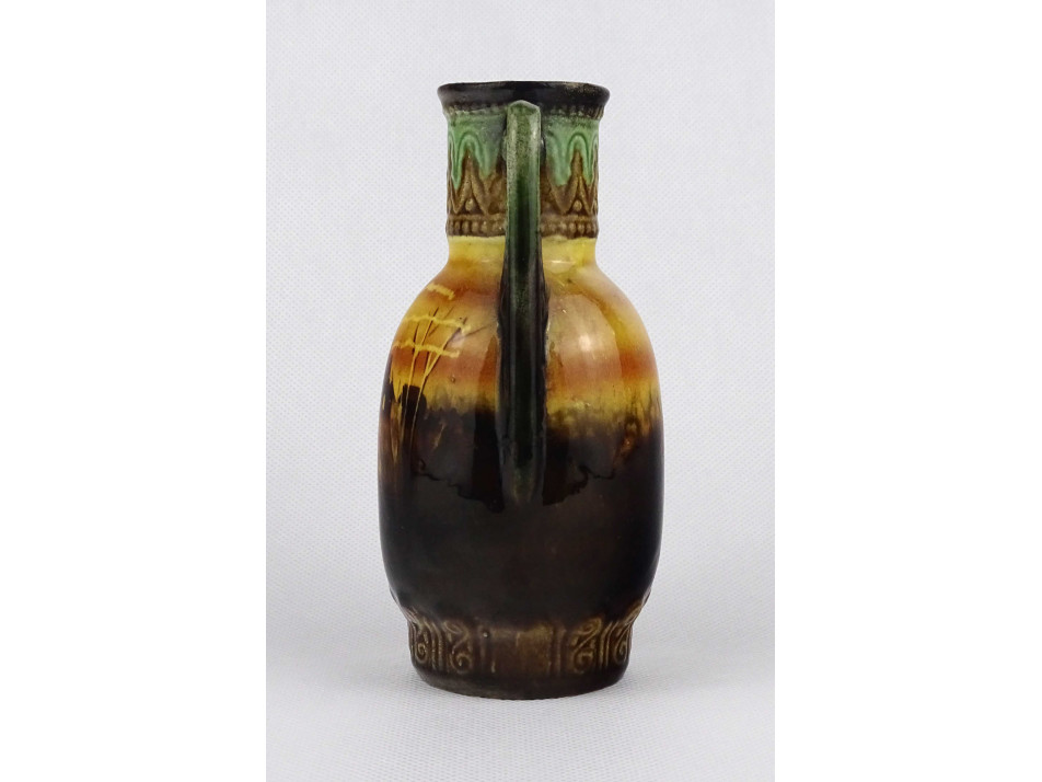 Antik szecessziós majolika amfóra váza 15.2 cm