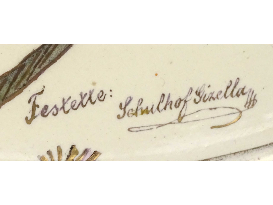 Antik hatalmas méretű feliratos Josef Steidl madaras majolika falitál 32.7 cm