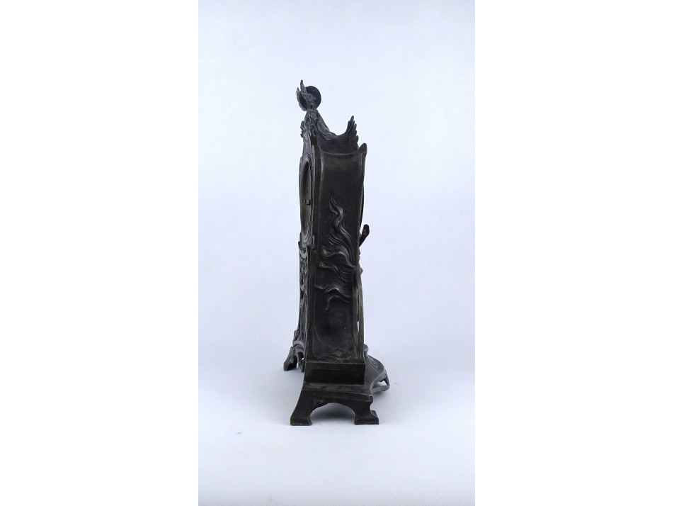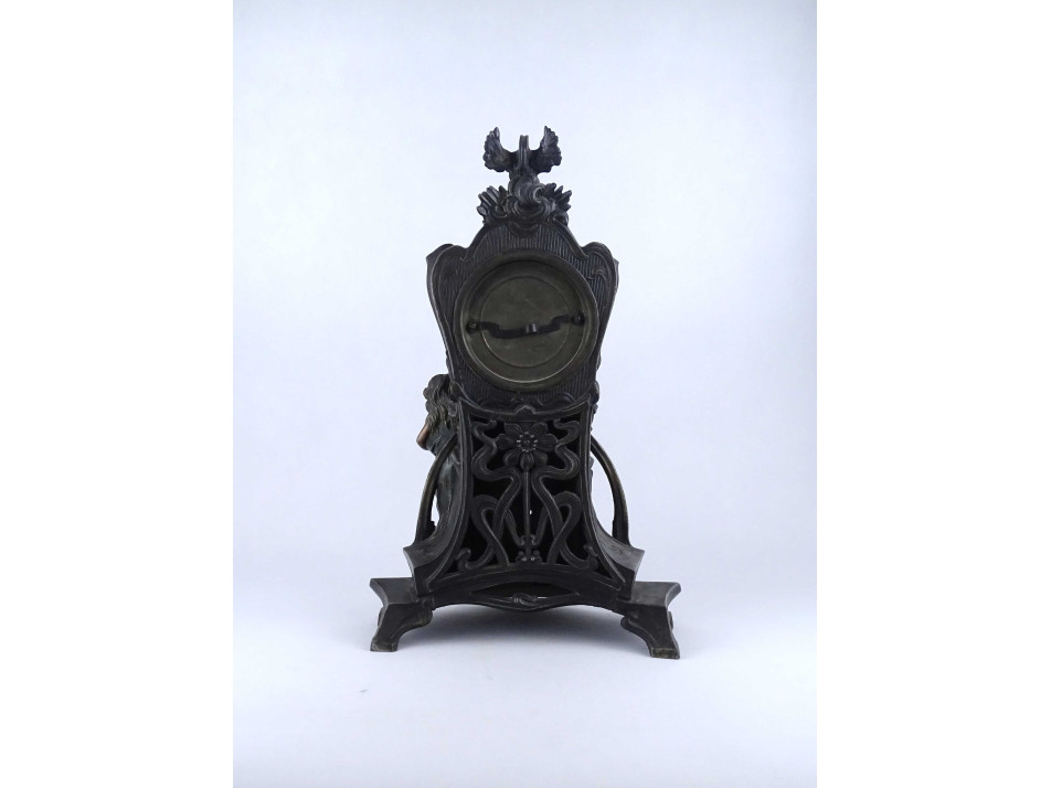 Antik szecessziós ón női szoborral díszített kandallóóra 42.5 cm