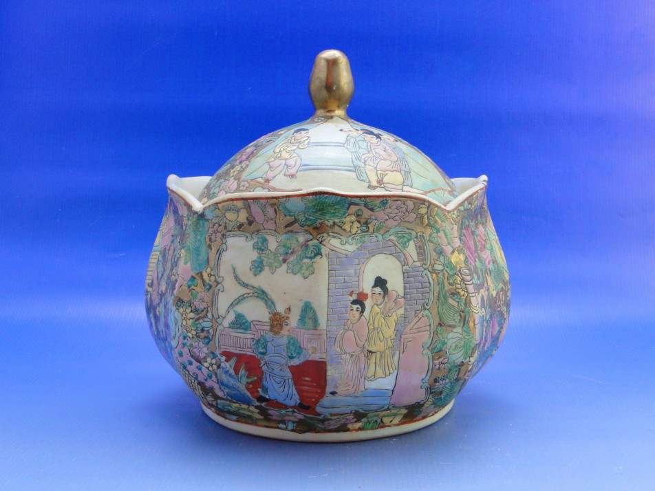 Hibátlan állapotú extra nagyméretű duplán jelzett óriási satsuma porcelán bonbonier.