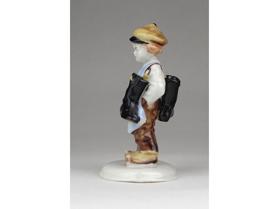 Hibátlan kalapos cipész kisfiú talapzaton. Német Metzler - Ortloff porcelán figura.