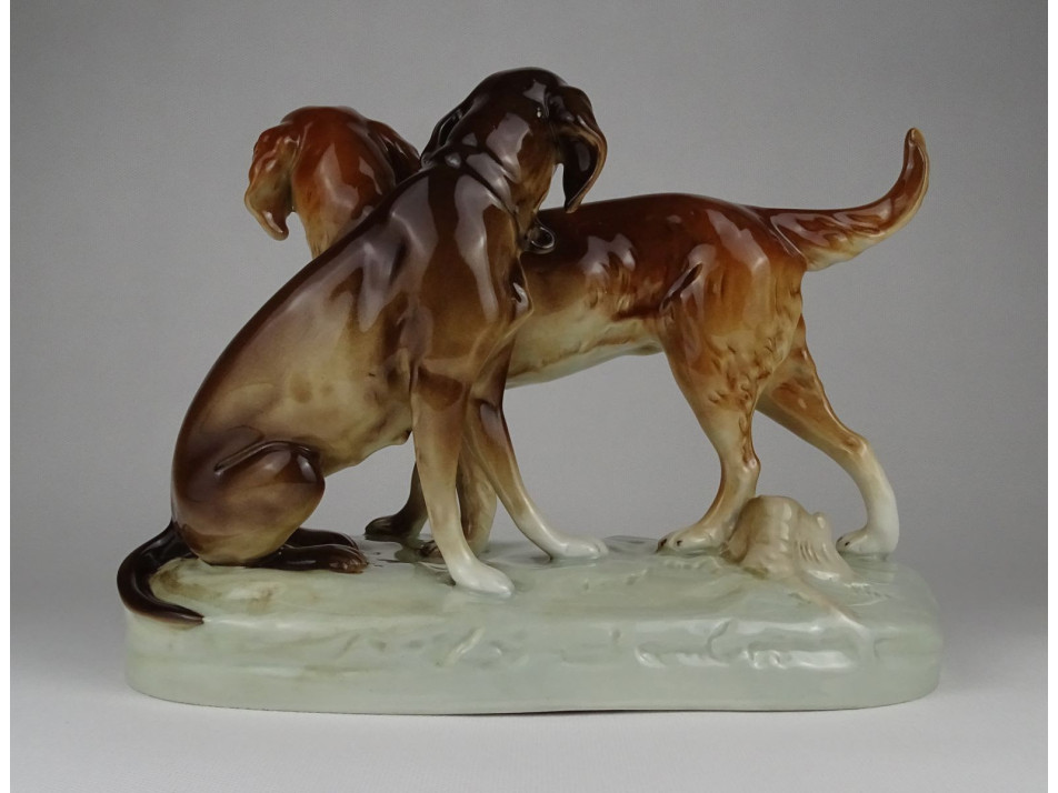 Nagyméretű Royal Dux porcelán vadászkutya pár 27 cm