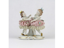 Antik, szép állapotú SITZENDORF porcelán figura, táncoló csipkeszoknyás kislány pár. A csipkeszoknyákon pár apró sérülés található