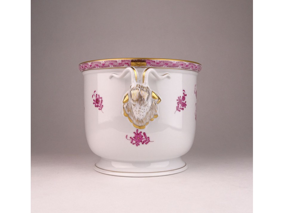 Hibátlan állapotú, aranyozott, lila Apponyi mintás, kosfejes porcelán kaspó.