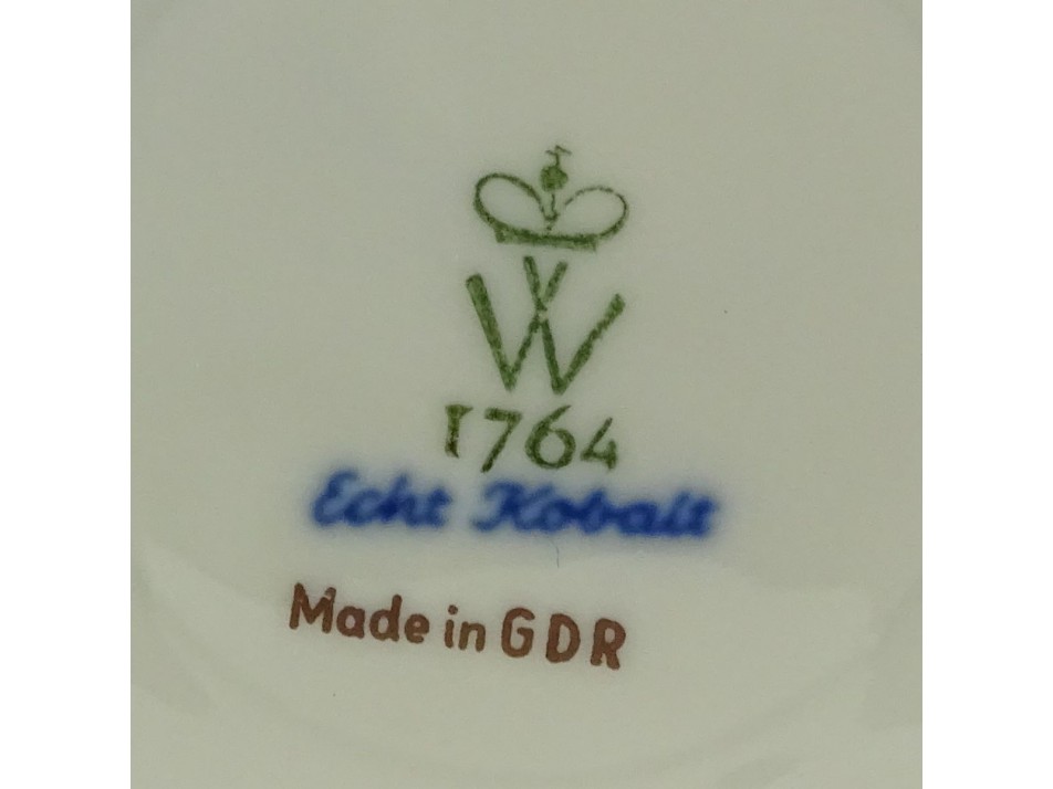 Hibátlan állapotú, nagyméretű, kobaltkék színű, gazdagon aranyozott, virágdíszes, jelzett porcelán díszváza, urna.