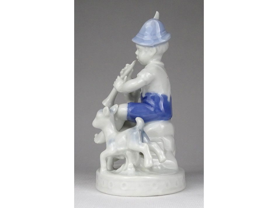 Hibátlan állapotú, Bavaria porcelán figura talapzaton. Kis kecskéknek furulyázó tollas kalapos fiú szobor.