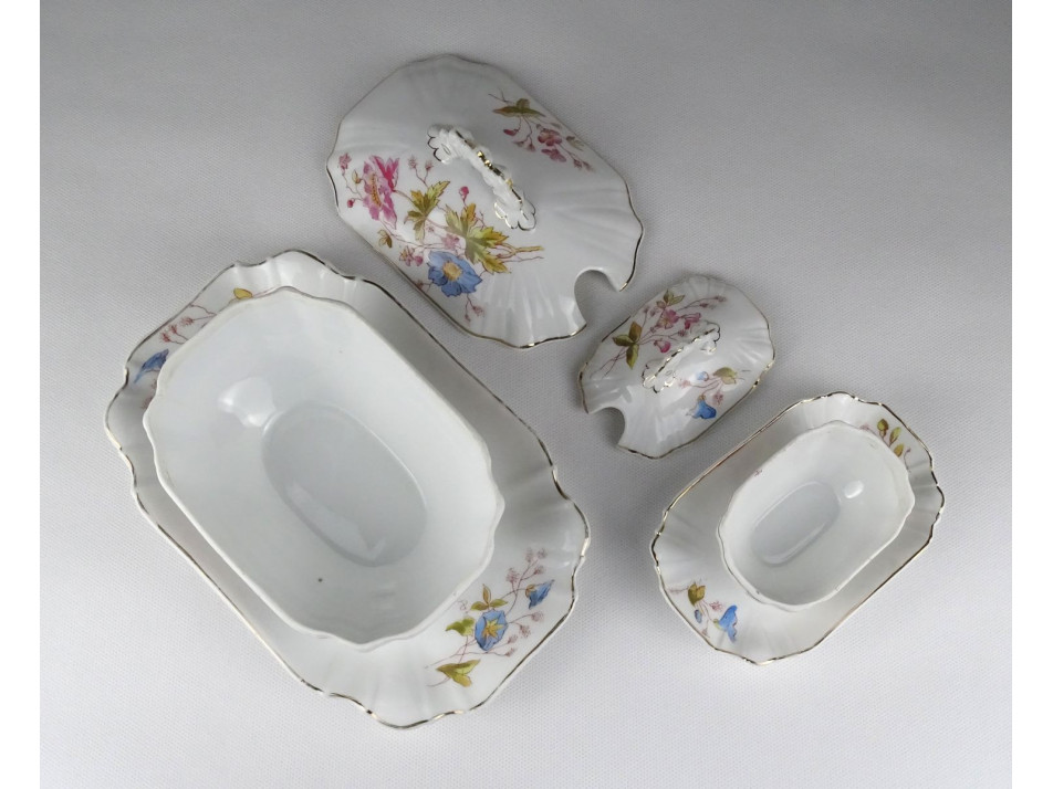 Régi, szép állapotú nagy méretű porcelán szószos tál, mártásos tál és kis méretű kaviáros kínáló tál: