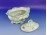Hibátlan állapotú, extra nagyméretű, barokkos formájú, jelzett, fedeles német porcelán cukortartó bonbonier, apró virágmintákkal.