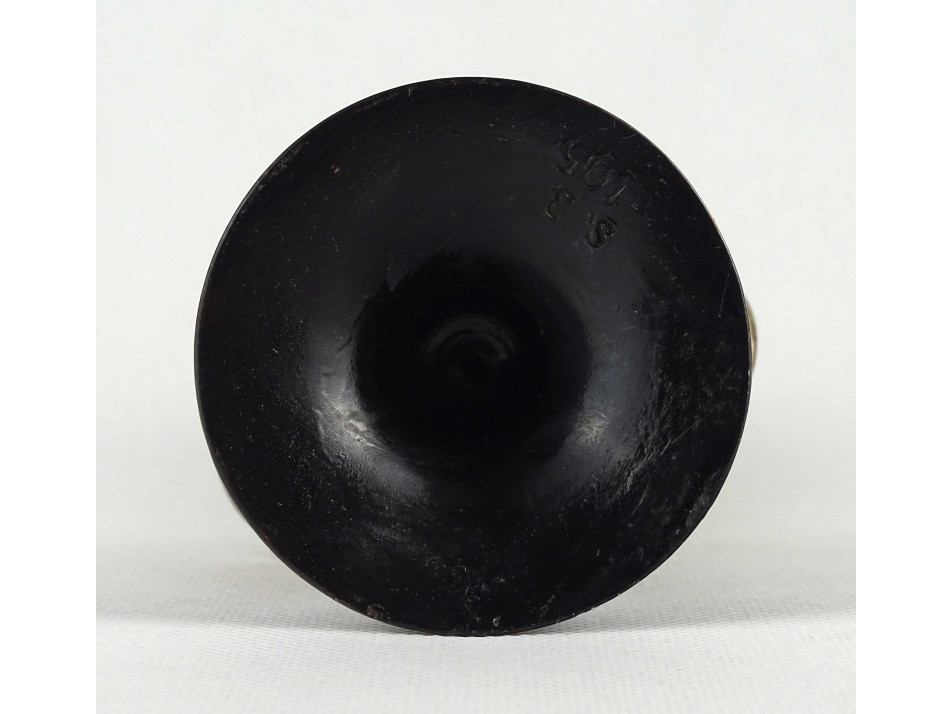 Antik, hibátlan állapotú, kisméretű jelzett terrakotta férfi büszt. A szobor talapzata feketére, a mellszobor arany színűre festett.