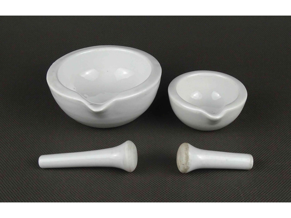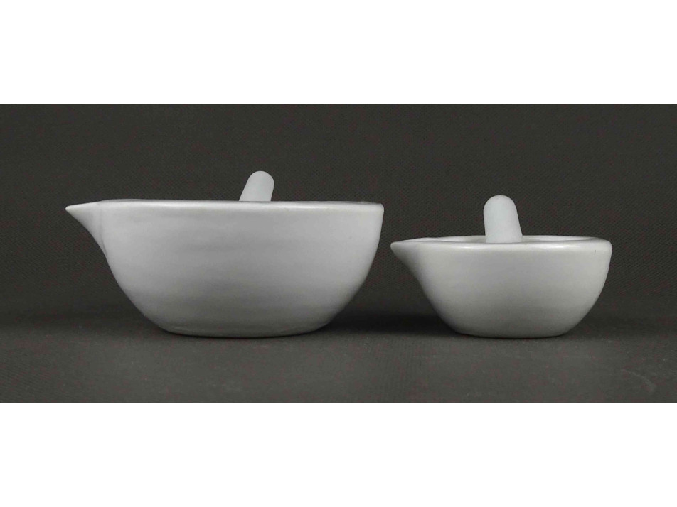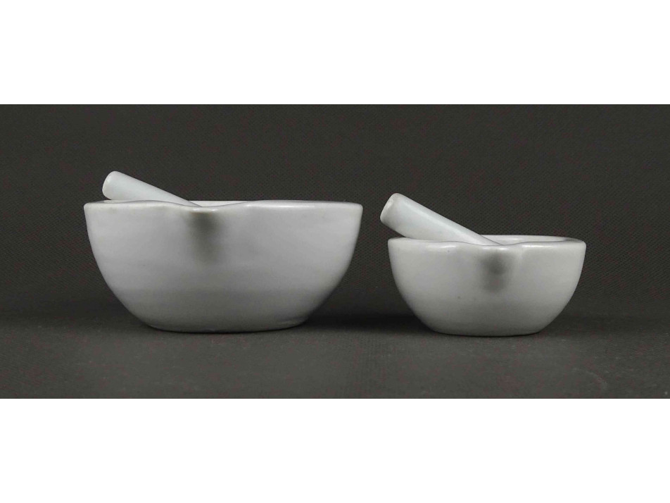 Antik, kisméretű, hibátlan állapotú, gyógyszerészeti, porcelán patika mozsár pár.
