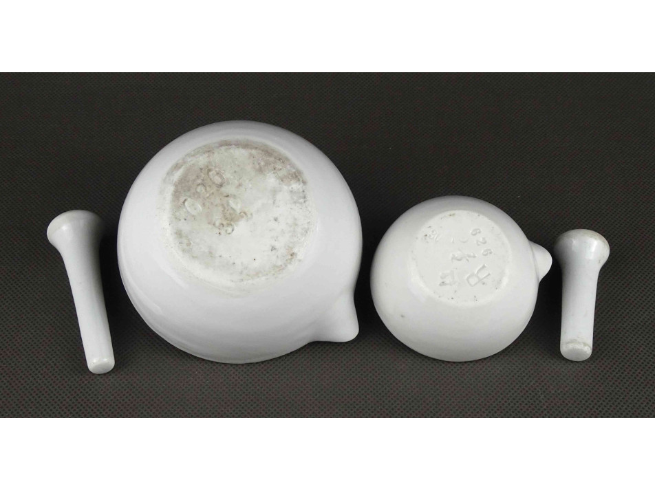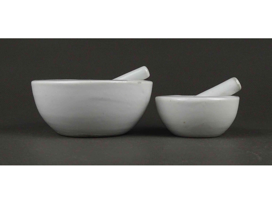 Antik kisméretű porcelán gyógyszerészeti patikamozsár pár