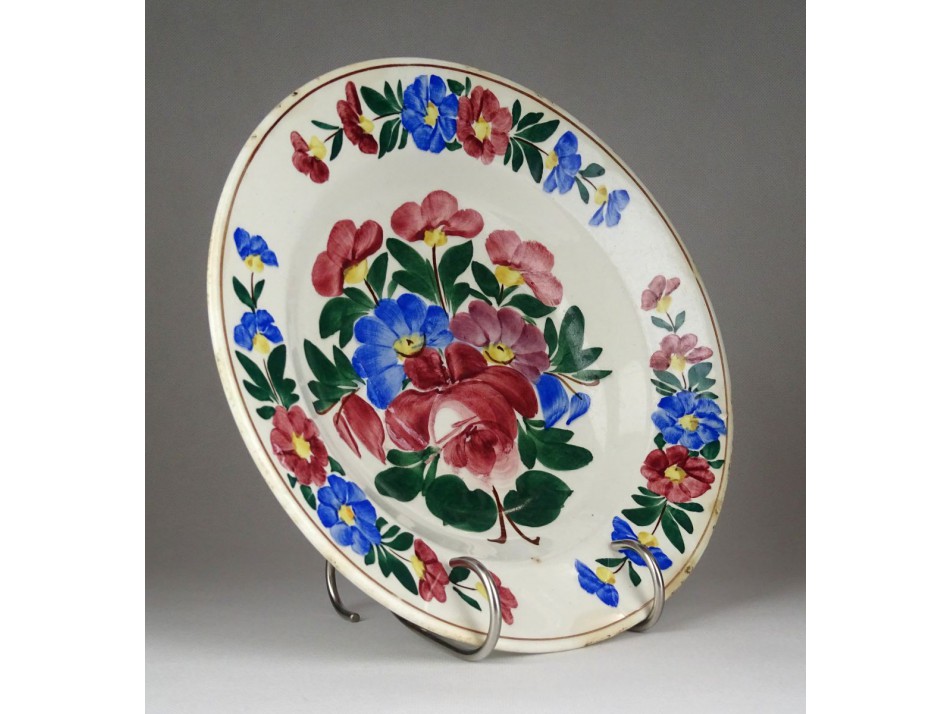 Régi jelzett virágos Kispest (~1930) falitányér 24 cm