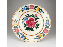 Antik, szép állapotú, nagy méretű, gazdagon díszített szív alakú porcelán keretben található metszett, fazettázott szélű antik tükör az 1800-as évek közepéről. A tükör felülete vakfoltos. A keret szélét körben plasztikus finom virágok díszítik, tetején két angyal virágfüzért tart. A szirmokon kisebb lepattanások előfordulnak, lásd fotó. Hátoldalán korábbi aukciósház leltárkódja látható.