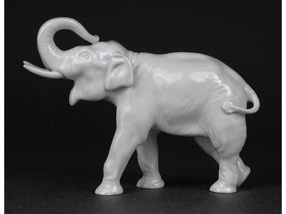 Régi kisméretű fehér bécsi Augarten porcelán elefánt figura 11.5 cm