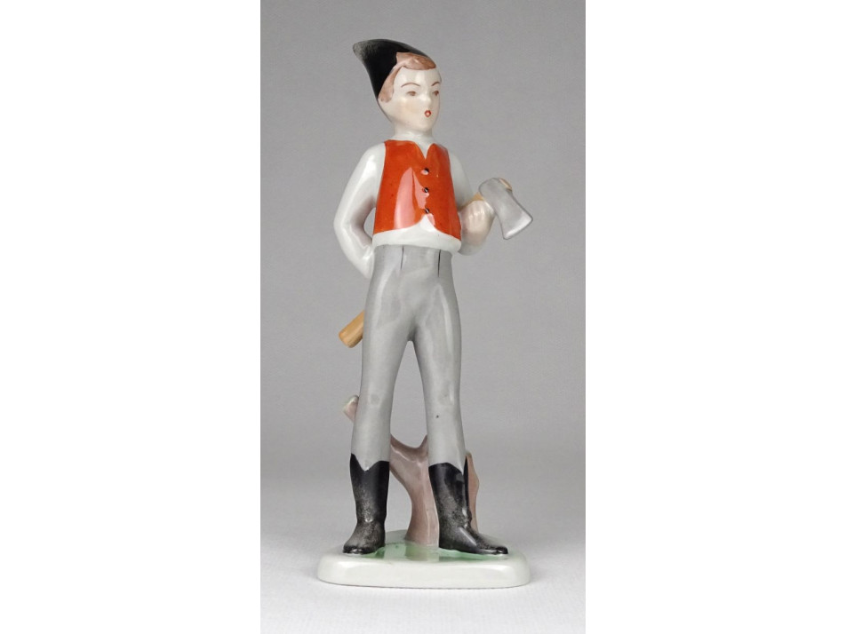Régi KP Kőbányai Porcelángyár favágó legény figura 15.5 cm