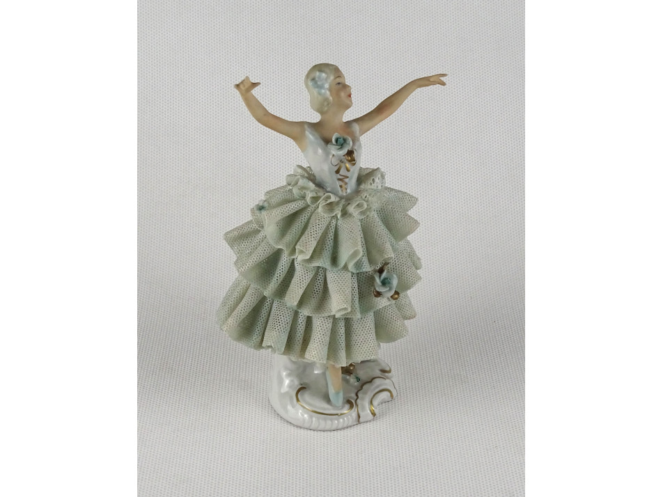 Régi, jelzett, Unterweissbach tüllszoknyás balerina porcelán figura. A szoknyán több hiba található.