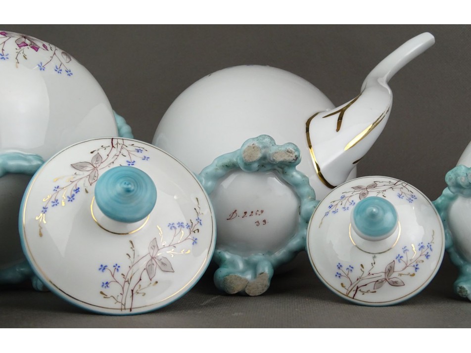 Antik virágmintás 6 személyes porcelán teáskészlet 19. sz. vége