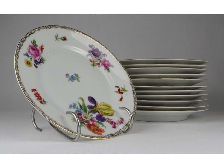 Hibátlan állapotú cseh Viktória porcelán süteményes készlet. Gazdagon aranyozott, virágokkal díszített készlet.
