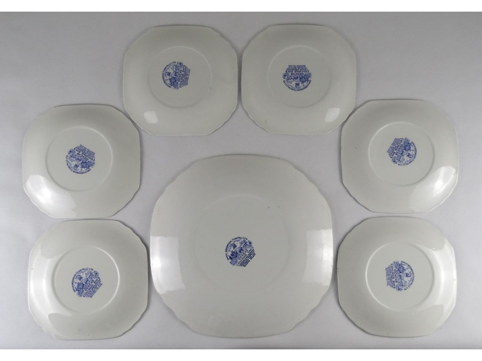 Régi, hibátlan állapotú, jelzett kék-fehér mintás angol porcelán süteményes készlet, tortás készlet.
