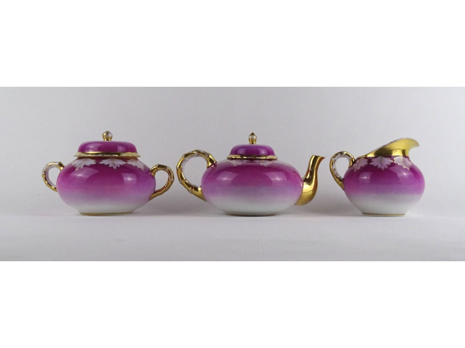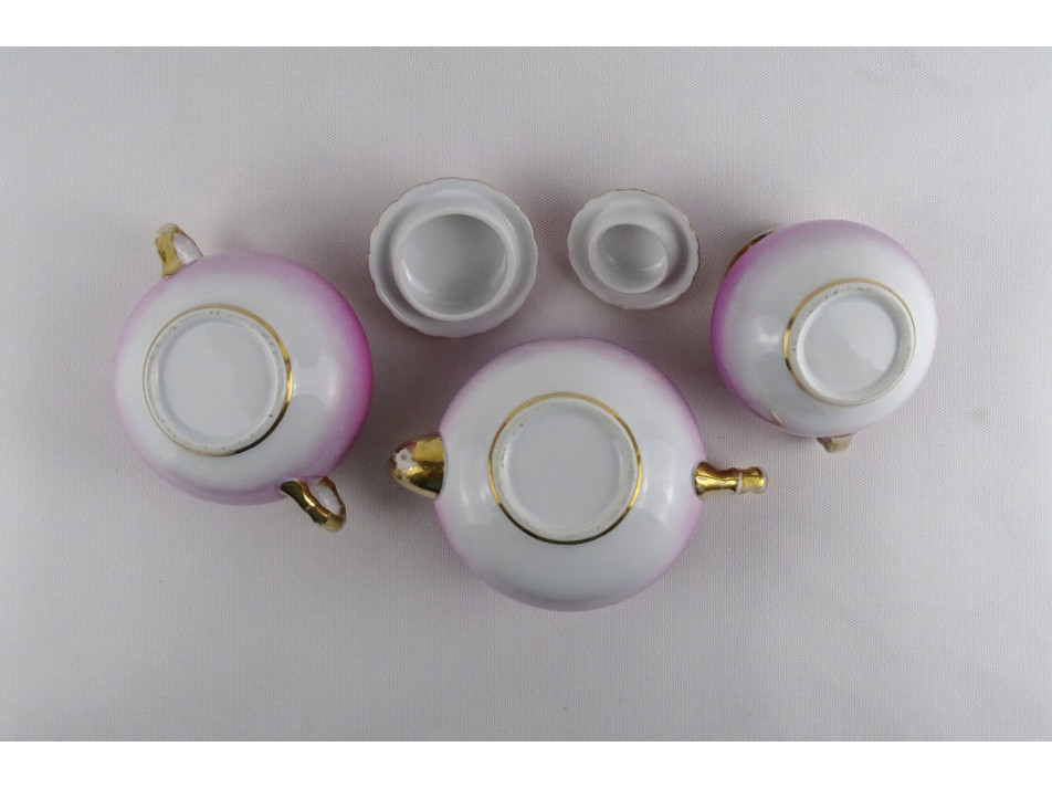 Régi rózsaszín porcelán kávéskészlet fő darabjai