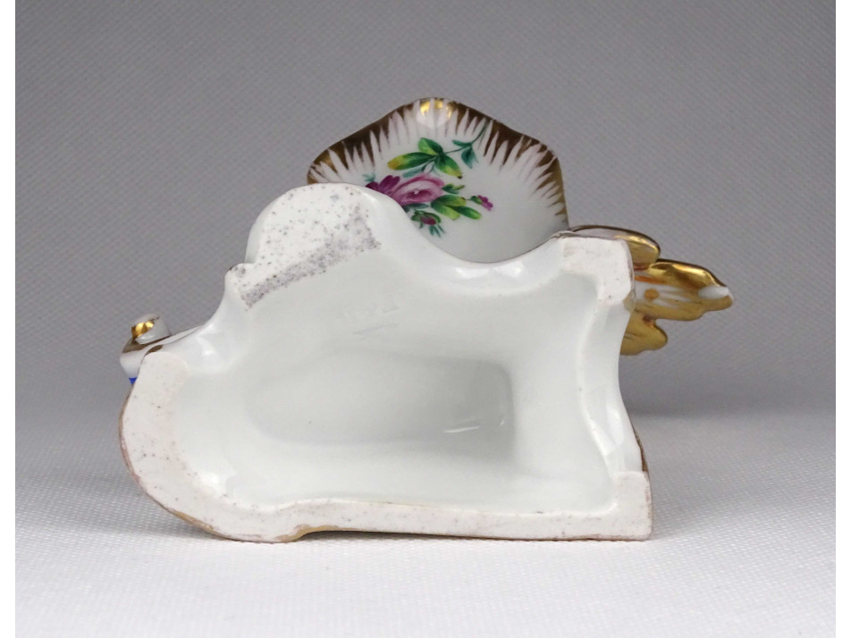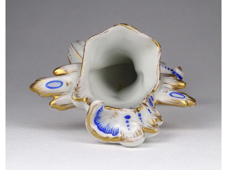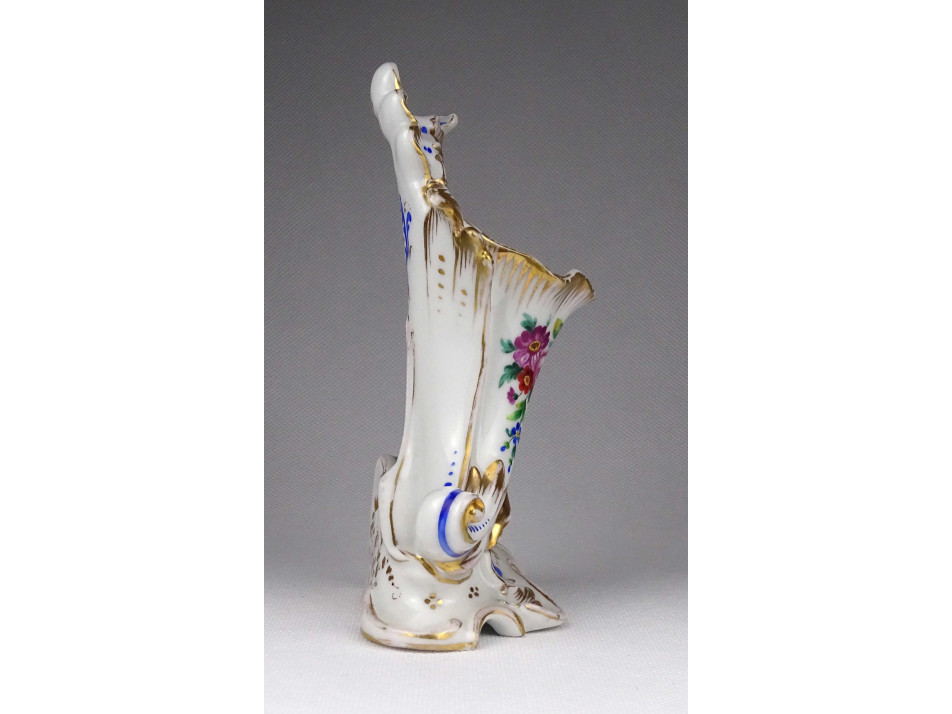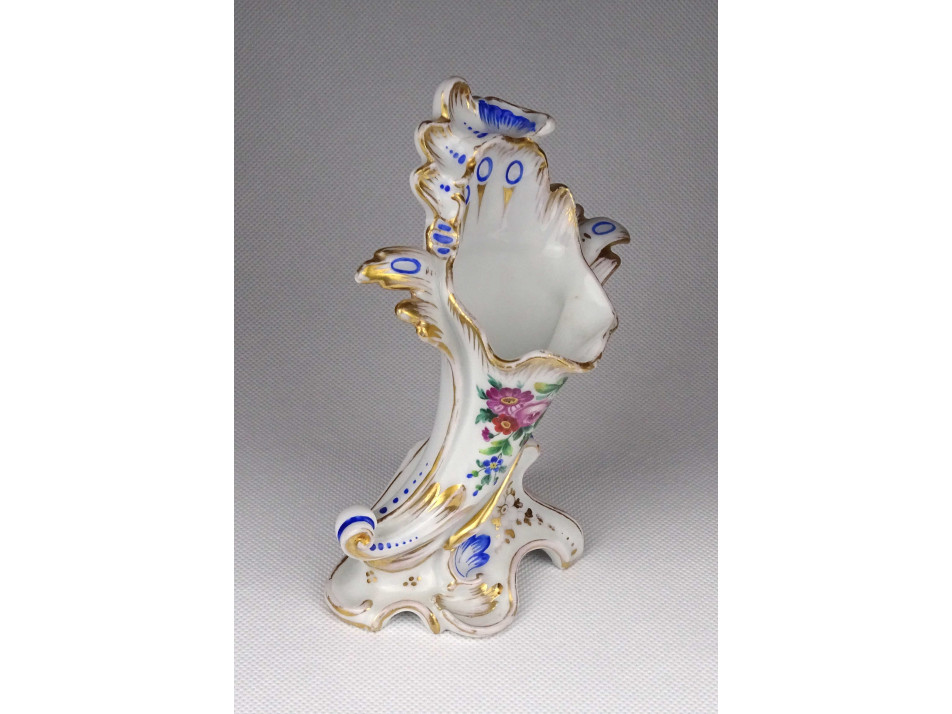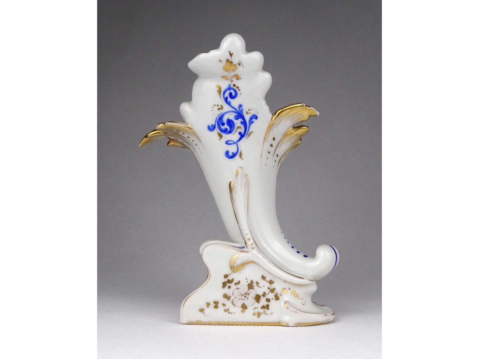 Antik barokkos, bőségszaru alakú, Fischer & Reichenbach porcelán díszváza 16.8 cm