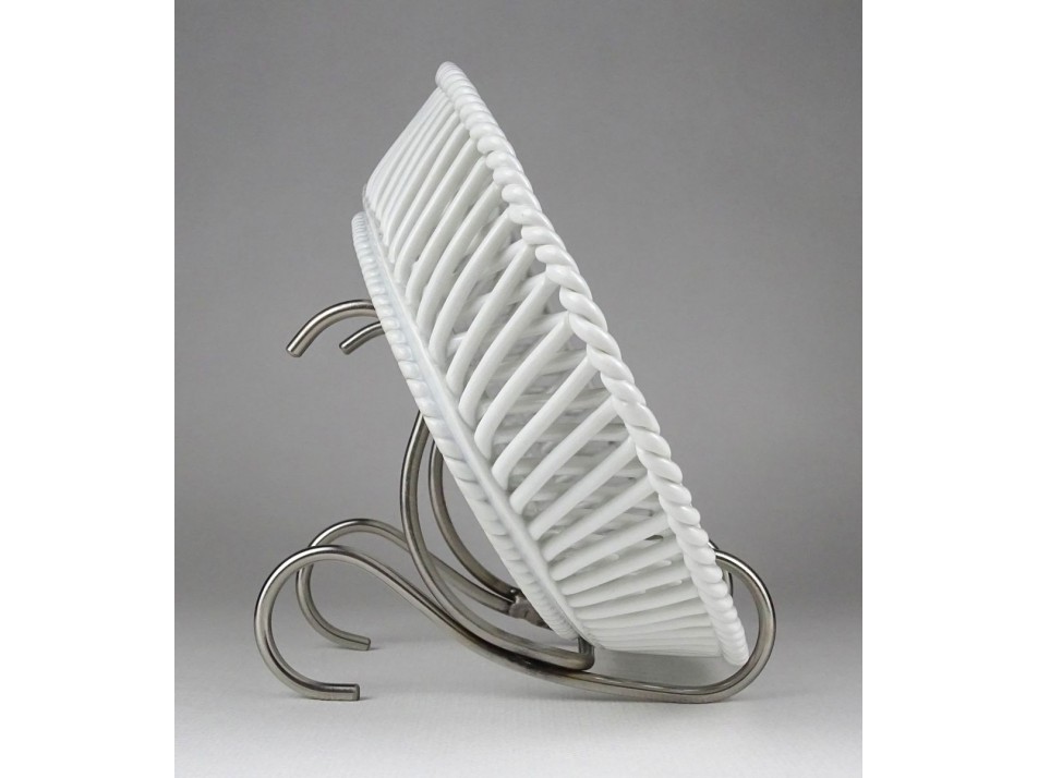 Régi, hibátlan állapotú, jelzett, szélén áttört, fonott, ovális alakú, kézzel festett, zöld Apponyi mintás Herendi porcelán kínáló tál.