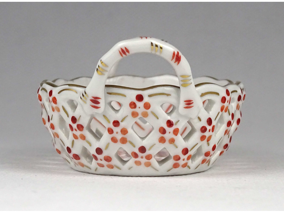 Apponyi mintás Herendi porcelán fonott kis kosár 8.7 cm
