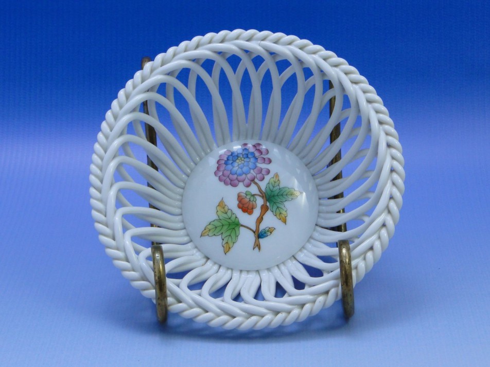Hibátlan állapotú, gyönyörű fonatos, áttört díszes I. osztályú herendi porcelán, kosárka.