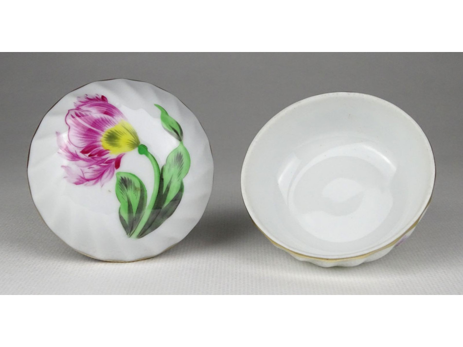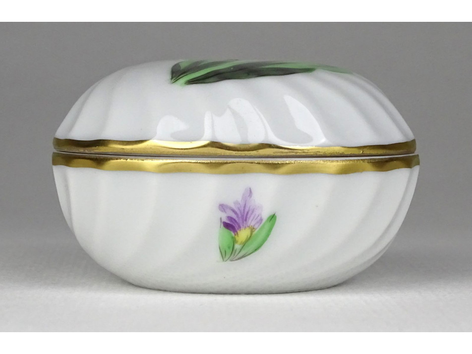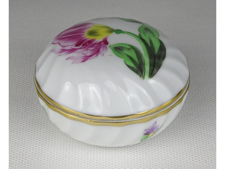 Hibátlan állapotú, gazdagon aranyozott tulipán mintás Herendi porcelán bonbonier.