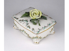 Festetlen aranyozott Herendi rózsás porcelán bonbonier