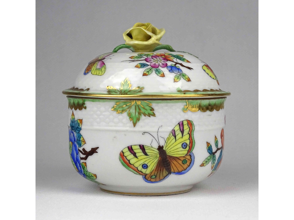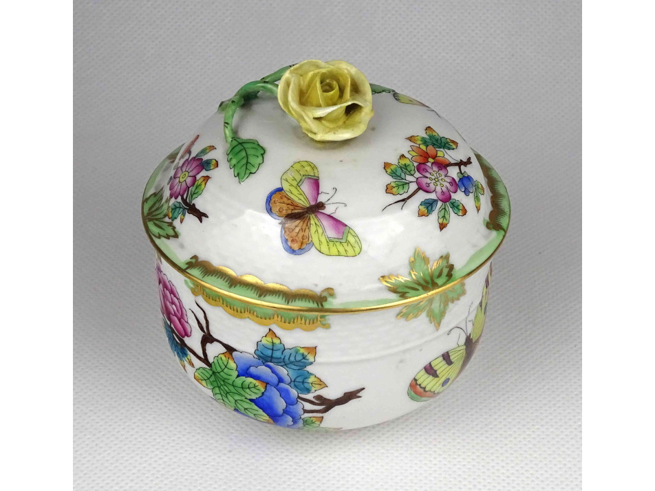 Antik Viktória mintás Herendi porcelán bonbonier 9.2 cm
