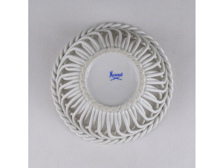 Hibátlan állapotú Herendi fonott, áttört díszes porcelán kosár, kínáló tálka.