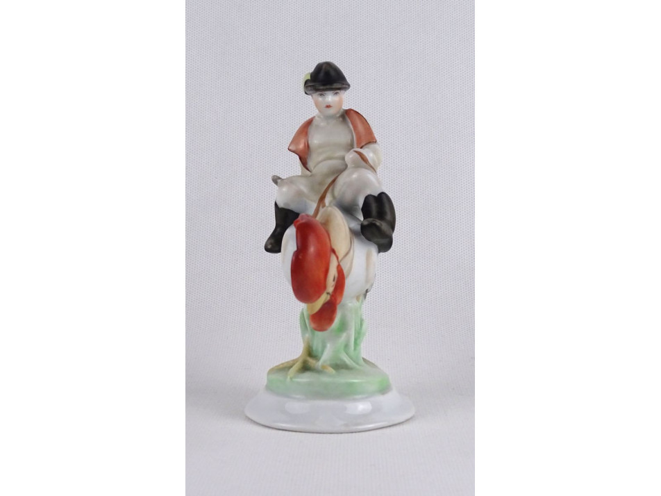 Hibátlan állapotú, régi, kézi festéssel díszített Kakas Marci porcelán figura.