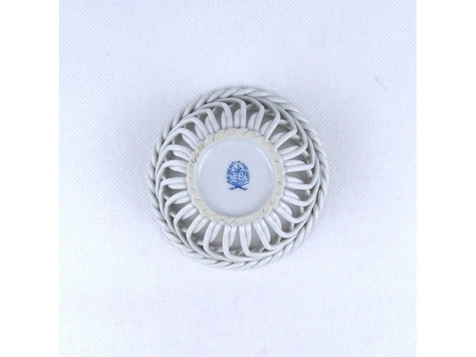 Hibátlan állapotú, gyönyörű, fonatos, áttört díszes I. osztályú Herendi porcelán, kosárka.