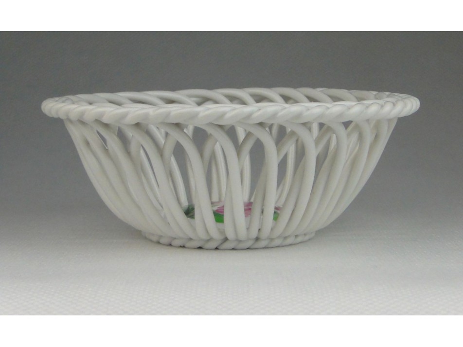 Régi, hibátlan állapotú, virágmintás, áttört, fonott Herendi kosár.