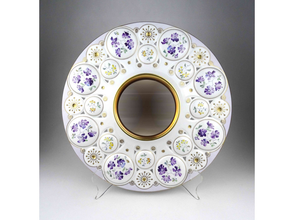 Hibátlan állapotú, nagyméretű, áttört szélű, virágmintás, Herendi porcelán tükör, porcelán keretes falitükör. Teljesen hibátlan, azonnal ajándékba adható állapotban van. Aranyozása karcmentes, makulátlan!