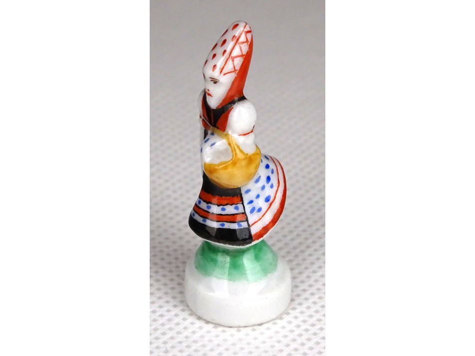 Antik óherendi mini porcelán menyecske figura 4 cm