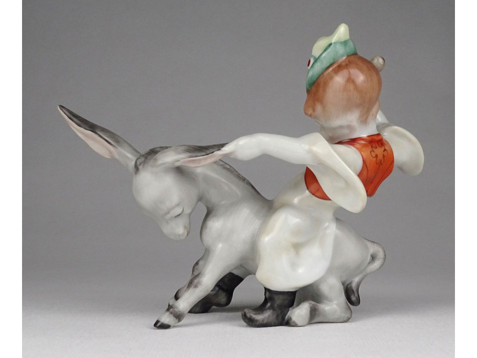 Jubileumi Herendi porcelán mesefigura kisfiú szamárral