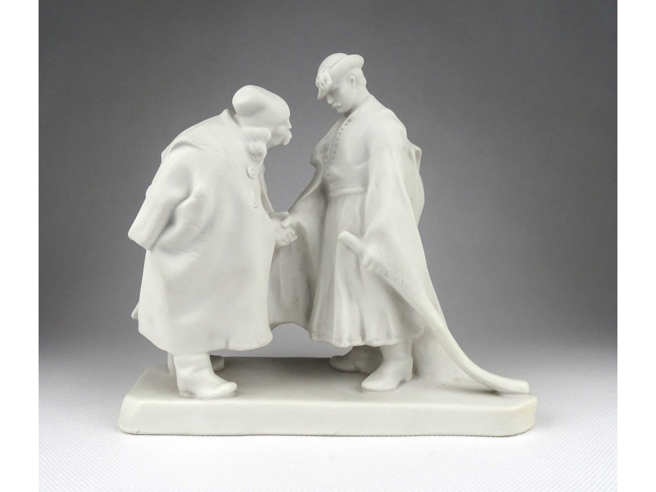 Régi Herendi porcelán biszkvit szobor - Pásztor J: búcsúzkodó juhászok