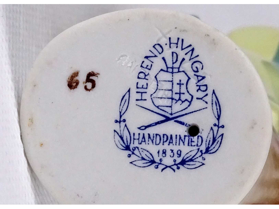 Hibátlan állapotú, kis méretű Herendi porcelán madár figura talapzaton.