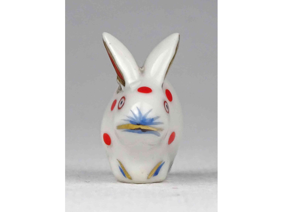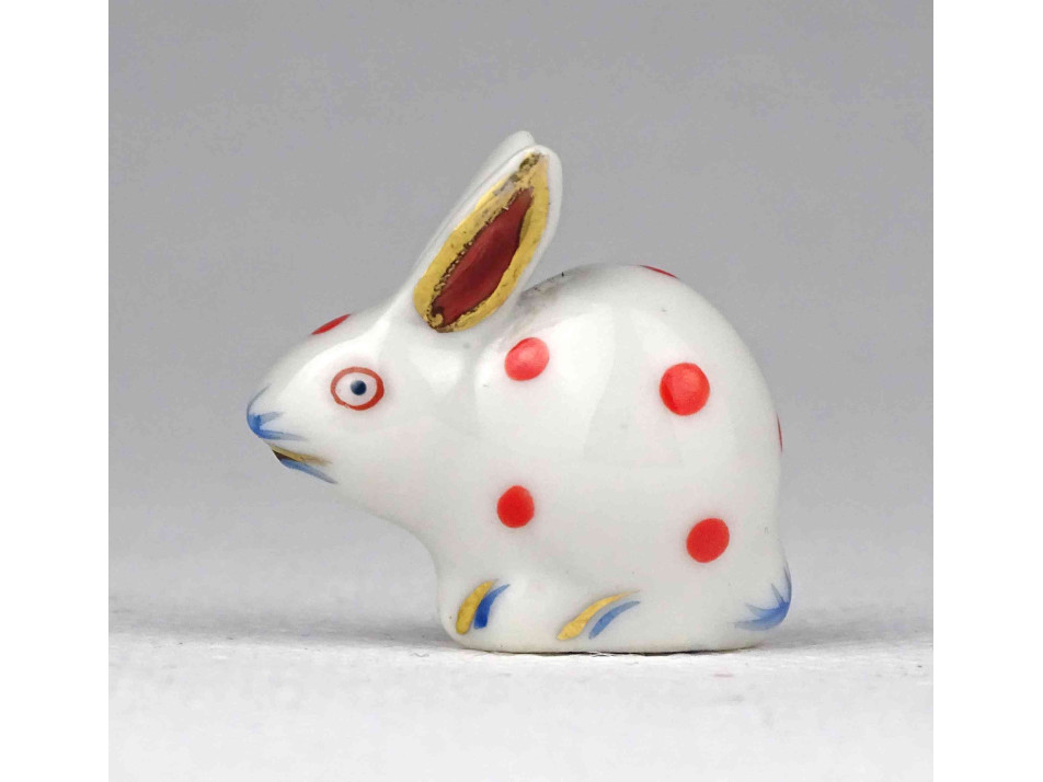 Antik ó-herendi porcelán kisméretű piros pettyes nyúl 2.4 cm