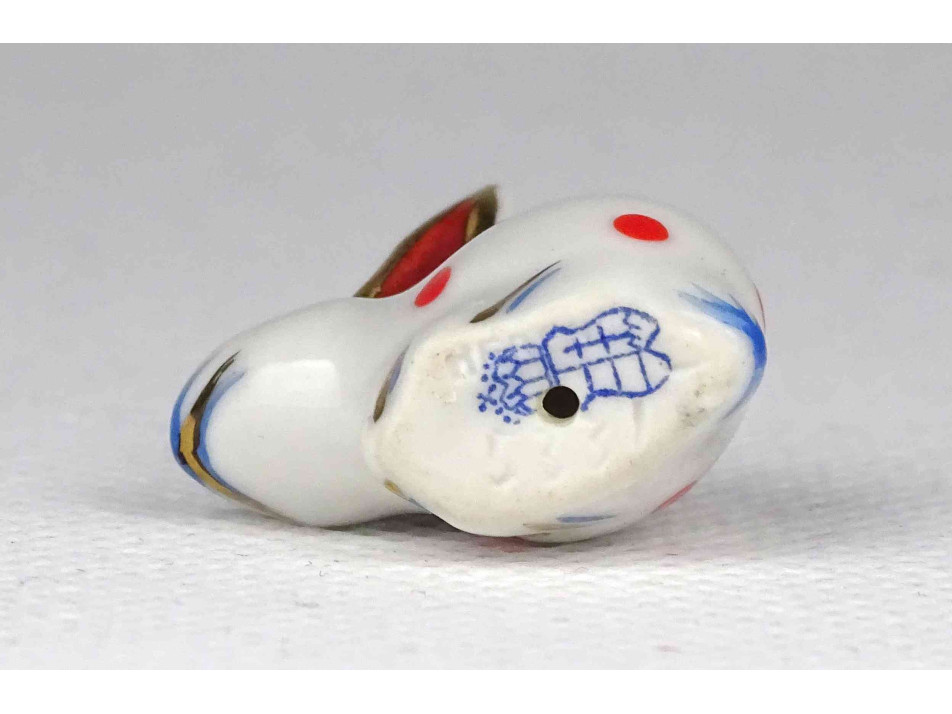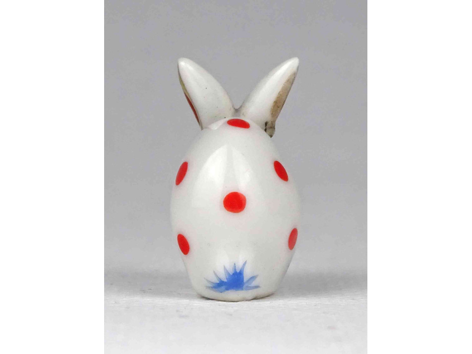 Nagyon régi Óherendi porcelán kézi festett kis méretű, mini nyuszi, nyúl. Piros pöttyös, piros fülű nyuszi.