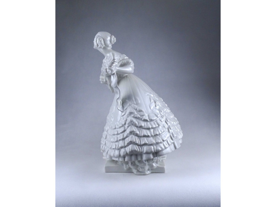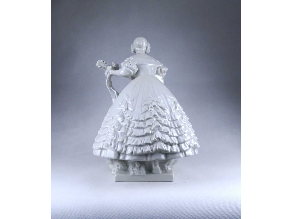 Hibátlan állapotú, nagyméretű, festetlen óherendi porcelán figura, talapzaton álló, gitározó Déryné szobor. A gitárról lógó szalag restaurátor által szakszerűen javított.