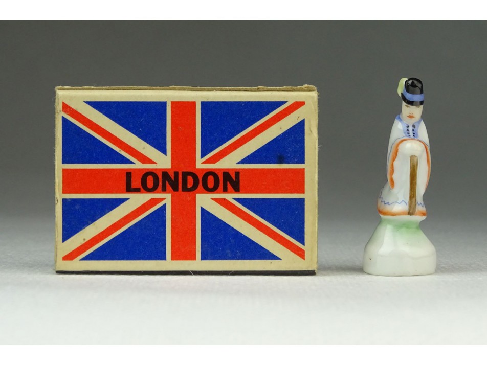 Hibátlan állapotú, talapzaton álló tollas, kalapos magyar juhász figura. A porcelán figura kézi festéssel díszített.