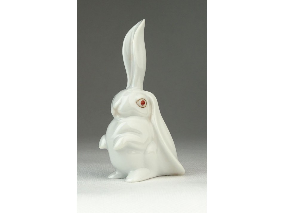Hibátlan állapotú, jelzett, Herendi porcelán kajlafülű, piros szemű nyúl, nyuszi.